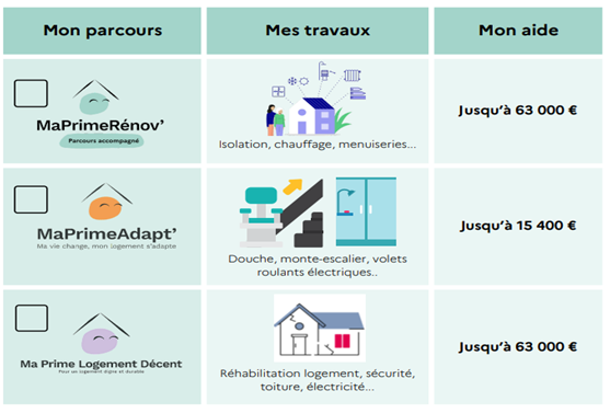 Selon vos conditions de ressources, bénéficiez des dispositifs gérés par la délégation de l'Anah des Vosges et cumulez jusqu'à 63 000 € d'aides (sous conditions), selon les 3 parcours ci-dessous :