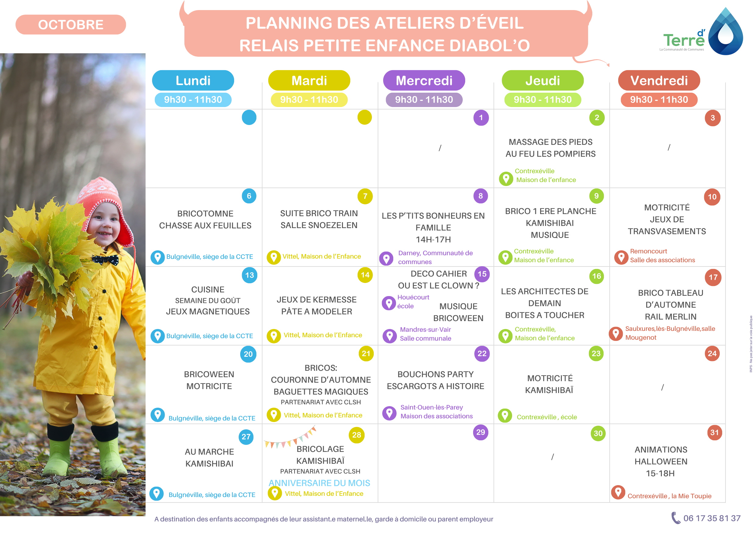 Les ateliers se déroulent selon un planning défini chaque mois :CHARTE DES ATELIER D'EVEIL : cliquez ici
